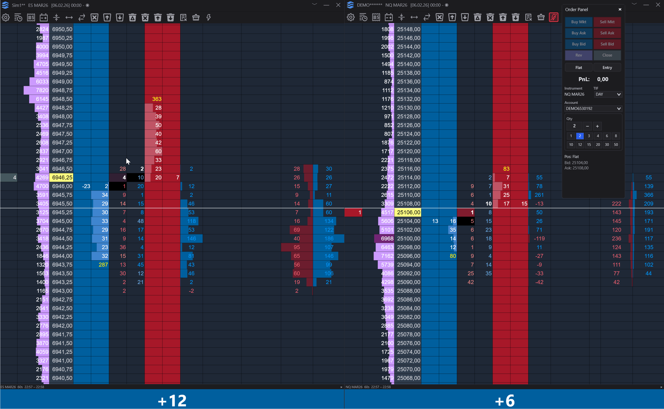 One-click entries, drag-and-drop order management, ATM strategies, and real-time PnL at every price level.